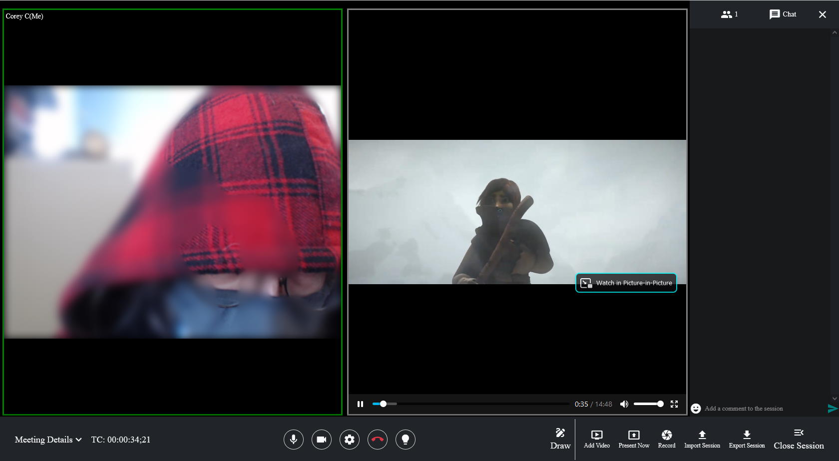 Once loaded, the video will open in a new screen within the session, so all participants can view it.